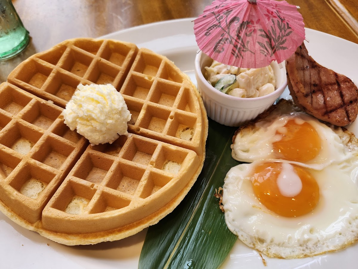 HALENOHEA specializes in a fusion of Hawaiian fare, offering a variety of delicious options that cater to both the sweet and savory cravings of diners. Indulge in their signature waffles, which are freshly made, boasting a perfect balance of crispness and fluffiness that melts in your mouth. The Spam & Egg Waffle Platter is a must-try, featuring a warm, buttery waffle topped generously with perfectly fried eggs and luscious buttercream, all waiting for your preferred drizzle of syrup. Additionally, the hearty Lokomoko is a crowd favorite, featuring a flavorful patty grilled to perfection, bringing home the island spirit right to your plate.